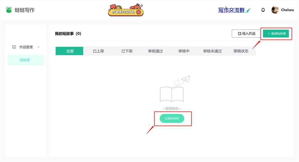 点击【新建短故事】或【立即AI创作】,进入【AI创作故事】页面
