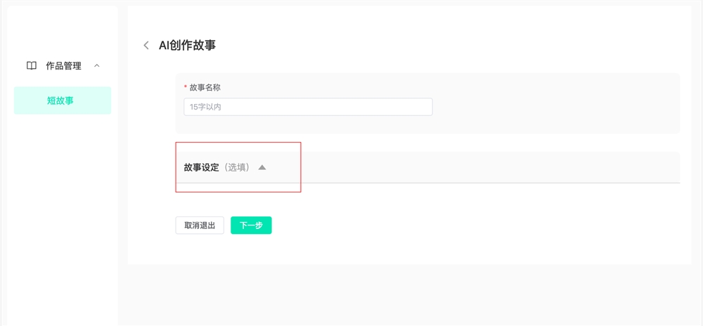 可收起【故事设定】,可不填,直接点击【下一步】进入编辑器